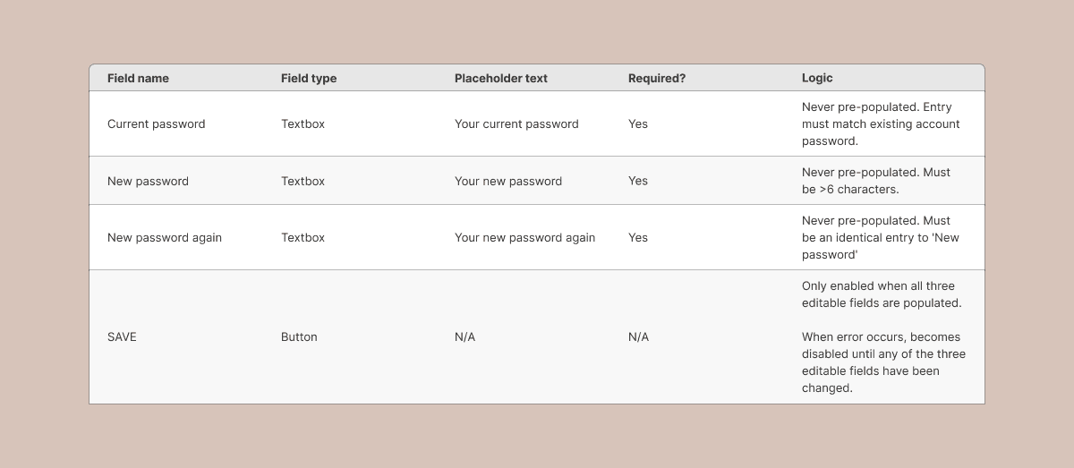 Change Password feature input field breakdown